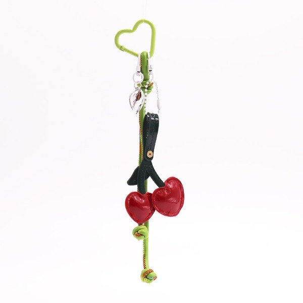 Los charms son el accesorio estrella de la temporada, y este modelo en forma de cereza es ideal para sumarle color y onda a tu cartera favorita. Confeccionado en PU tipo charol con cordones decorativos, cuenta con un broche metálico en forma de corazón para colgarlo fácilmente y renovar tu look al instante. Divertido, original y con mucha personalidad. ¡Animate y elegí el color que más te guste!