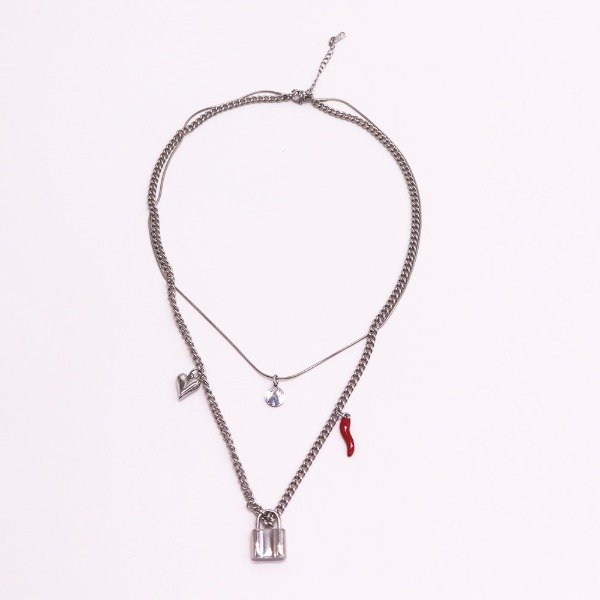 De estilo layer en dos niveles, este collar combina cadenas de distintos eslabones con dijes colgantes de cerezas y lunas, aportando un toque lúdico y entretenido a tu look. Incluye tope de seguridad para ajustarlo cómodamente a la medida de tu cuello. Ideal para sumar color y personalidad a cualquier outfit.