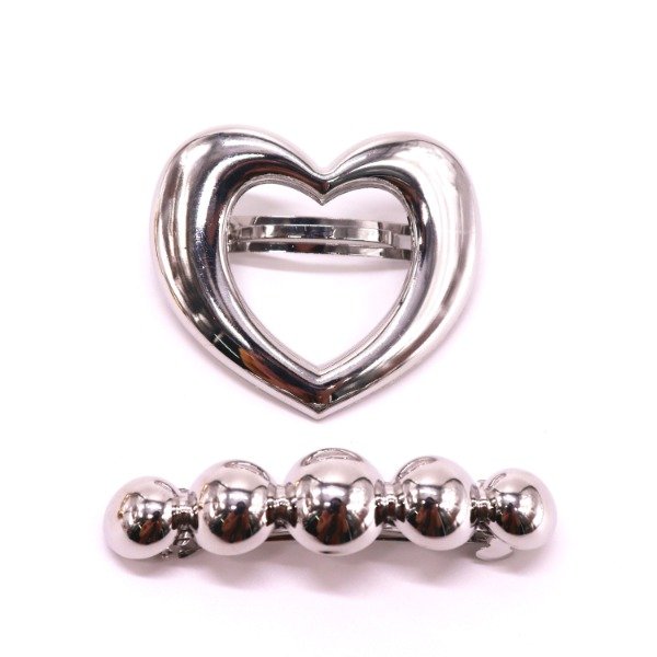 Este set de hebillas medianas es el toque final perfecto para tus peinados veraniegos. Inspiradas en el mar, están confeccionadas en metal con baño silver y gold de larga duración, lo que les aporta un brillo elegante y atemporal. Vienen con clip tipo “francés”, ideales para sujetar el cabello con firmeza sin perder estilo. Podés usarlas juntas o por separado, según el look que quieras lograr. Para conservarlas en buen estado, evitá mojarlas y guardalas en un lugar seco y sin mucha luz.