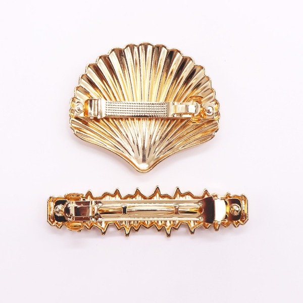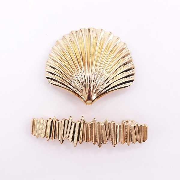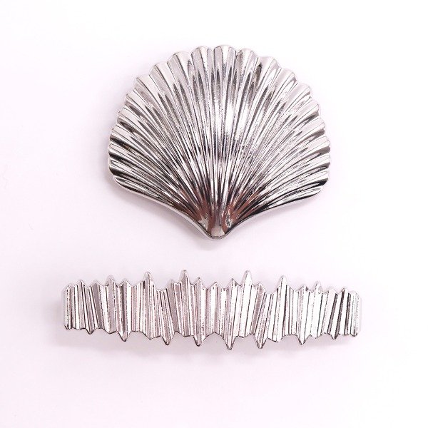 Este set de hebillas medianas es el toque final perfecto para tus peinados veraniegos. Inspiradas en el mar, están confeccionadas en metal con baño silver y gold de larga duración, lo que les aporta un brillo elegante y atemporal. Vienen con clip tipo “francés”, ideales para sujetar el cabello con firmeza sin perder estilo. Podés usarlas juntas o por separado, según el look que quieras lograr. Para conservarlas en buen estado, evitá mojarlas y guardalas en un lugar seco y sin mucha luz.