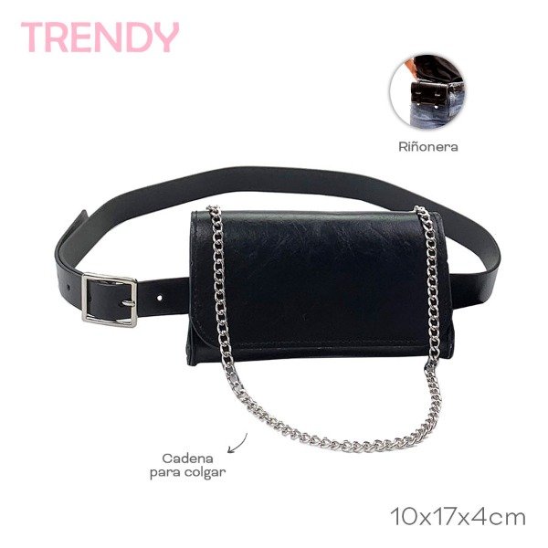 Cinturon Con Riñonera Trendy 11cm 17cm 4cm Pu Trae cadena para colgar y cinturon para utilizar como riñonera