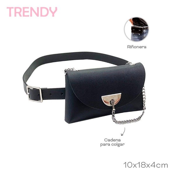 Cinturon Con Riñonera Trendy 10cm 18cm 4cm Pu Trae cadena para colgar y cinturon para utilizar como riñonera