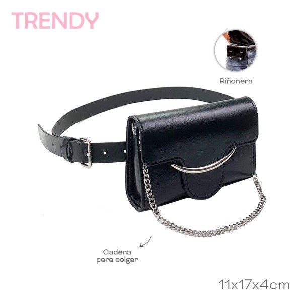Cinturon Con Riñonera Trendy 11cm 17cm 4cm Pu Trae cadena para colgar y cinturon para utilizar como riñonera