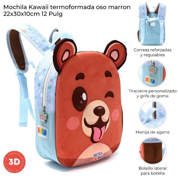 MOCHILA KAWAII OSO MARRON TERMOFORMADA SKORA12 Pulg 42159