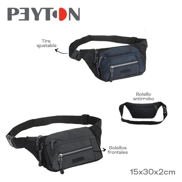 Info: Tira ajustable, bolsillos frontales y antirrobo
