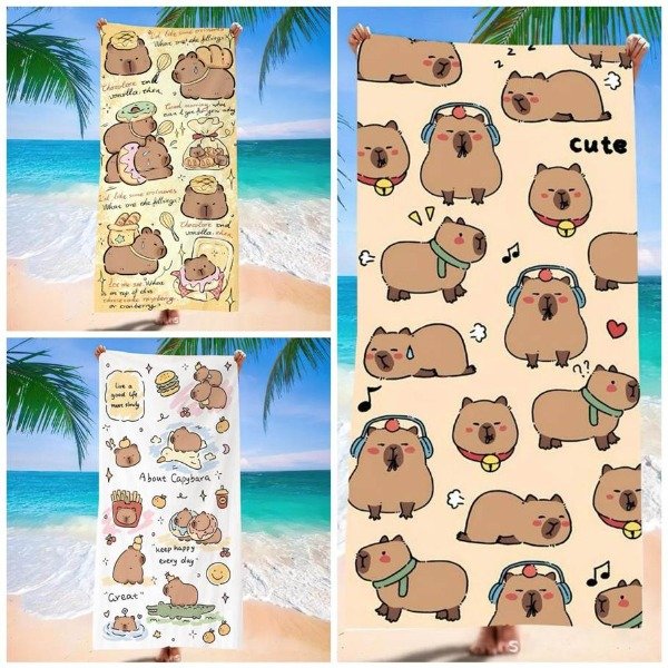 Este toallón no solo es funcional, sino que también añade un toque de alegría y color a los días de verano. Es una excelente opción para regalar en cumpleaños o para disfrutar en familia, creando recuerdos inolvidables bajo el sol. Con el Toallón Playero Capibara, cada día de verano se convierte en una celebración de diversión y estilo.