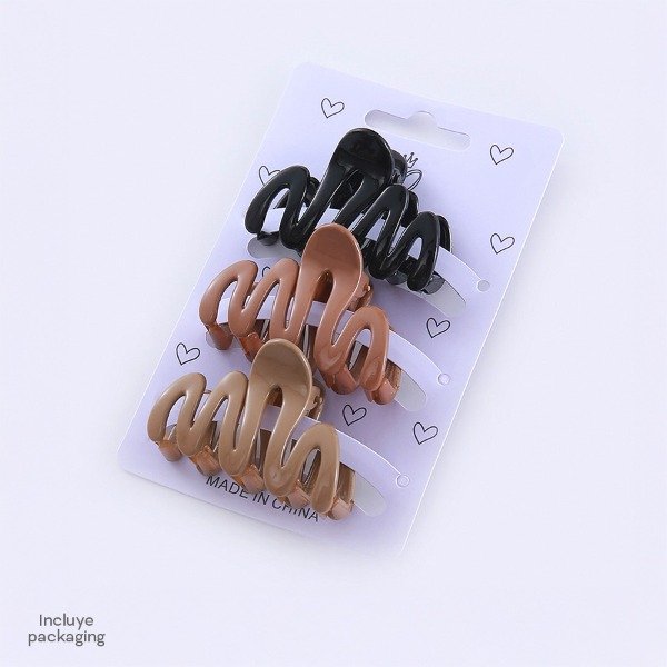 Set Broche Trendy 5,5cm 3,5cm plastico Incluye packaging. 3 BROCHES POR CARTON