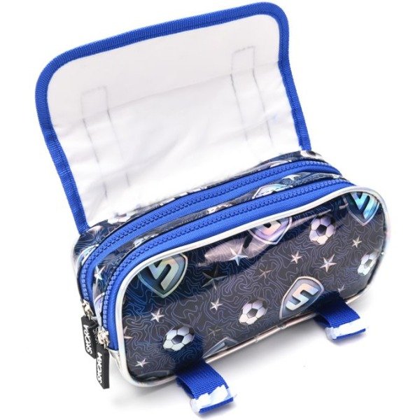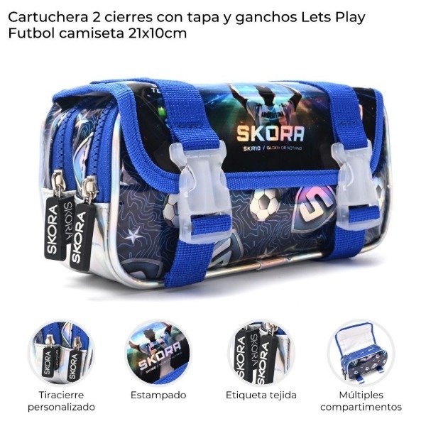 Cartuchera 2 cierres con tapa y ganchos Let´s Play Futbol camiseta 21x10cm x1u