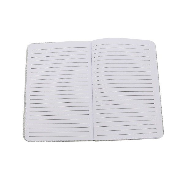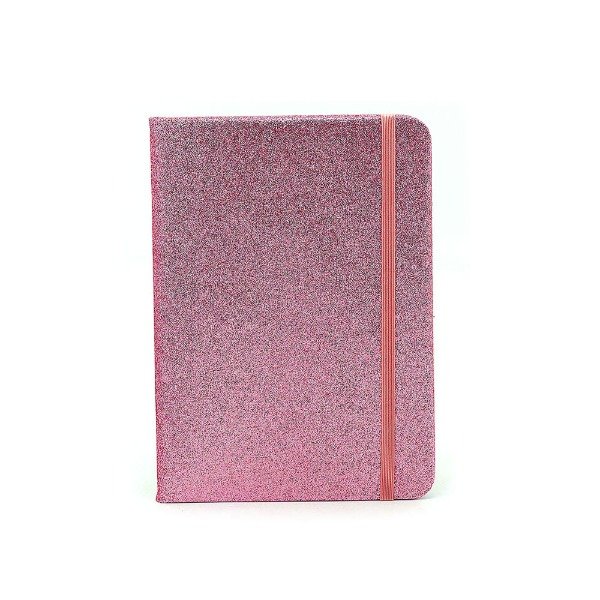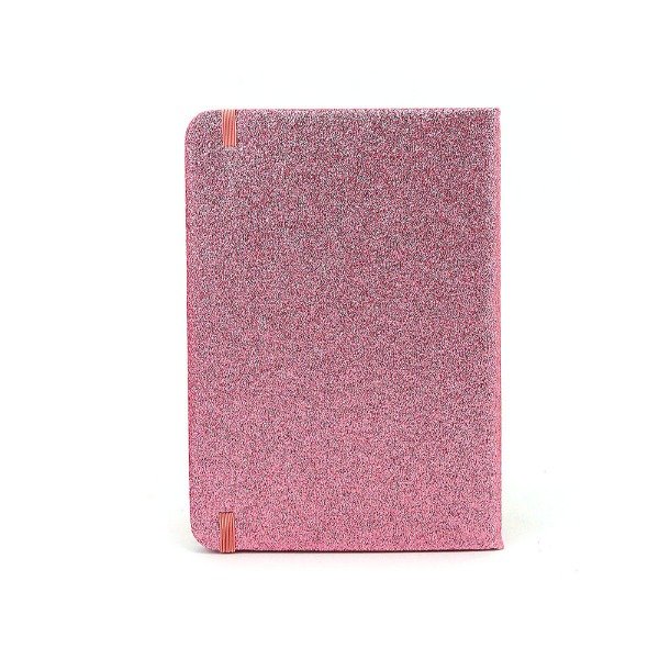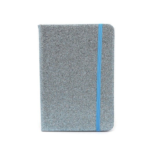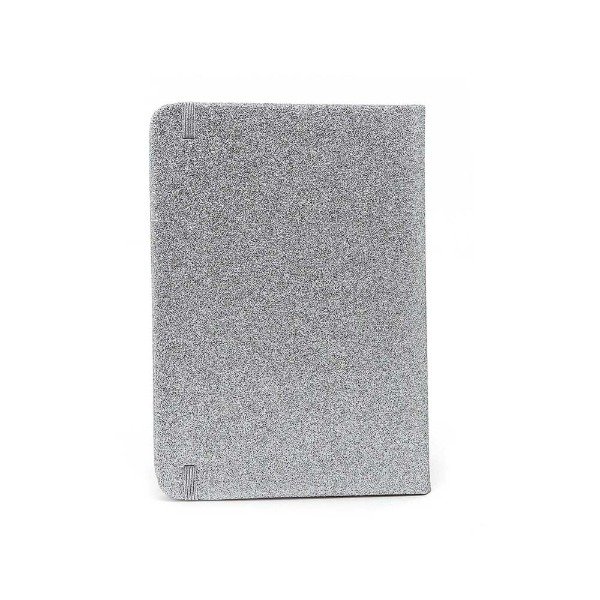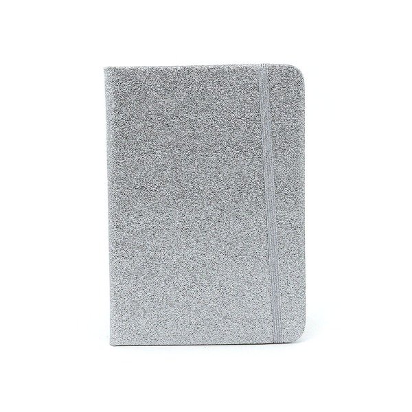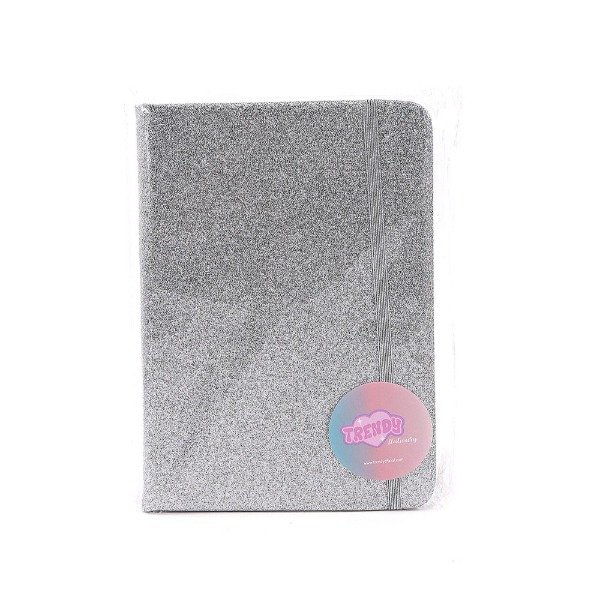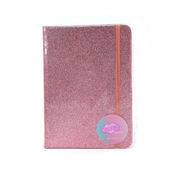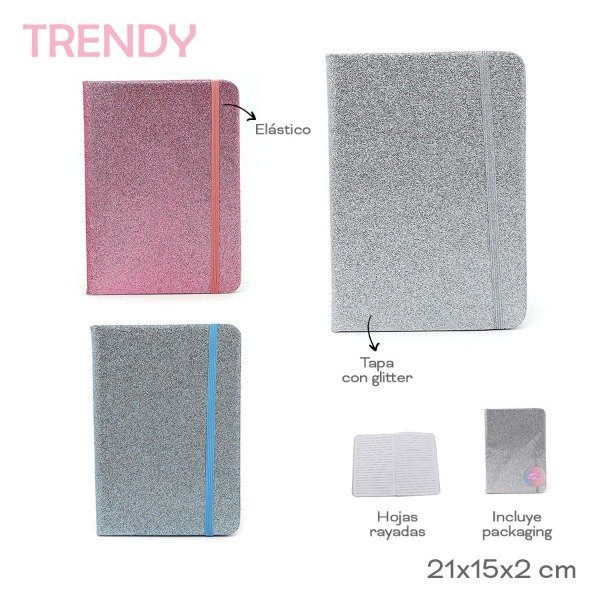 Info: Elástico, tapa con glitter, hojas rayadas, incluye packaging