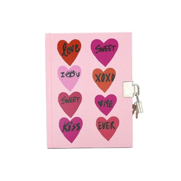 Info: Candado y juego de llaves, detalles con glitter, hojas rayadas, inc packaging