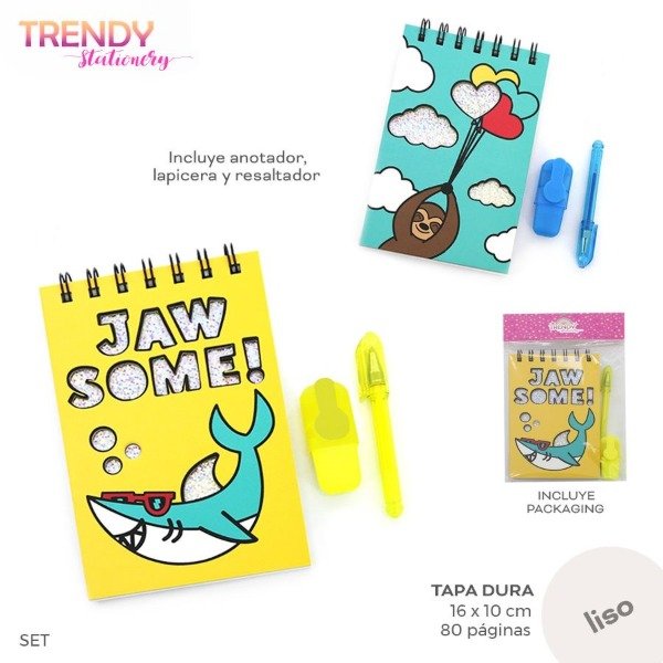 Anotador Trendy 14561 Color: Amarillo y celeste. Medidas: 16cm de alto x 10cm de ancho x 1cm de profundidad. Material: 80% Papel y 20% Plástico.