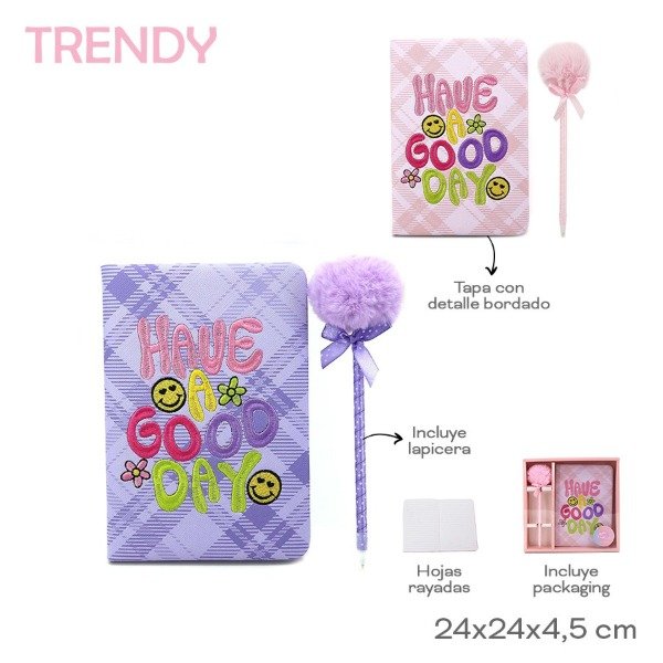 Info: Tapa con detalle bordado, hojas rayadas, inc lapicera y packaging