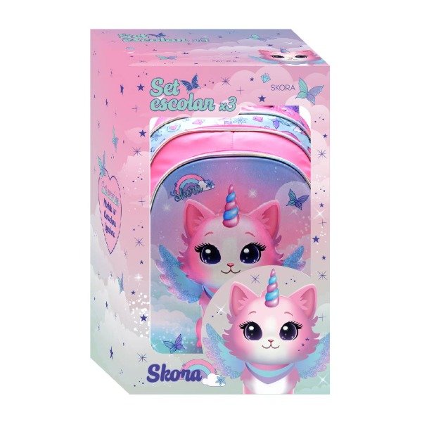 SET X 3 MOCHILA CON LUNCHERA Y CARTUCHERA THINK HAPPY RAINBOW SKORA 16 PULGADAS