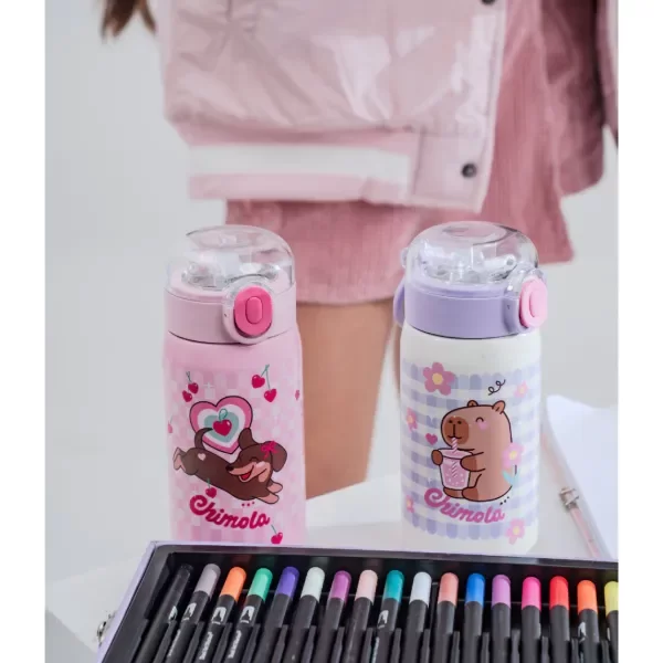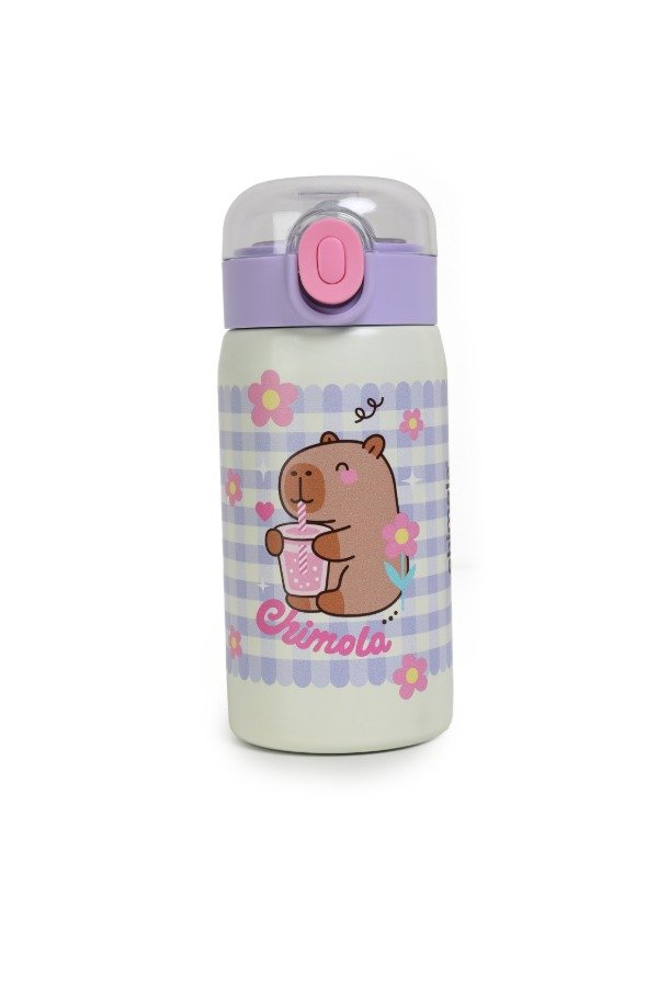 ¡Llevá tu bebida favorita a todos lados con la Botella Cute! Ideal para lxs peques que no paran un segundo. Tiene una capacidad de 350 ml, manija para transportarla fácilmente, base de goma antideslizante y bombilla de silicona con traba en el pico para evitar derrames.Está hecha con acero inoxidable de alta calidad (interior 304, exterior 316) y tiene tapa de PP con cierre hermético, lo que ayuda a conservar la temperatura de las bebidas —frías o calientes— hasta por 6 horas.No se recomienda su uso en microondas ni lavavajillas.Disponible en cuatro diseños: Panda, Capibara, Dog y Bunny. Segura, práctica y con todo el estilo Chimola
