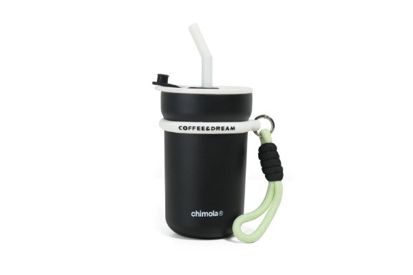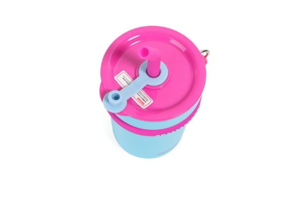 Vaso térmico con sorbete, tapa rosca y correa. Interior: acero inoxidable 304. Tapa: PP con rosca y cierre hermético. Sorbete: silicona curva, desmontable. Mantiene líquidos calientes o fríos por más tiempo (hasta 6-8 hs aprox.). Base antideslizante y cuerpo ergonómico. No apto para microondas ni lavavajillas