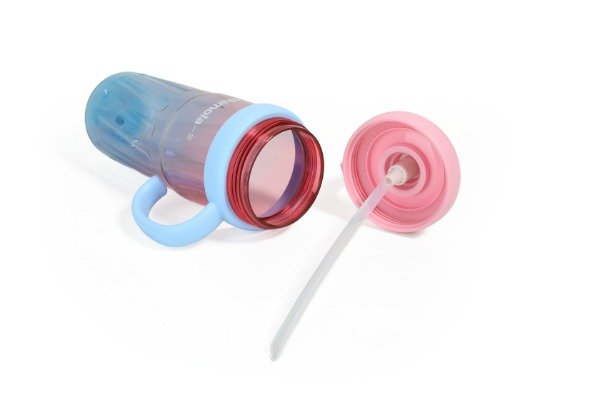 Vaso termicode plástico con manija, tapa rosca y boquilla con válvula. Cuerpo: plástico AS transparente con efecto degradé, libre de BPA. Tapa: PP con rosca y boquilla de silicona con válvula antiderrame. Manija lateral ergonómica para mayor comodidad. Tapa con loop flexible para transportar o colgar fácilmente. Apta para bebidas frías o a temperatura ambiente (no calientes). No apta para microondas ni lavavajillas.
