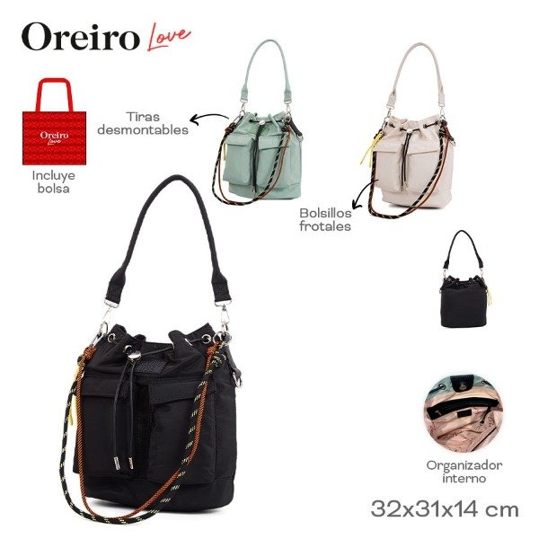 Cartera Oreiro 32cm 31cm 14cm Nylon Bol frontales, tiras desmontables, org interno, incluye bolsa