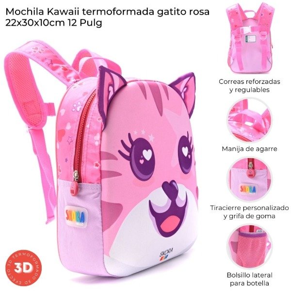 Mochila Kawaii GATITO ROSA termoformada 22x30x10cm 12 Pulg
