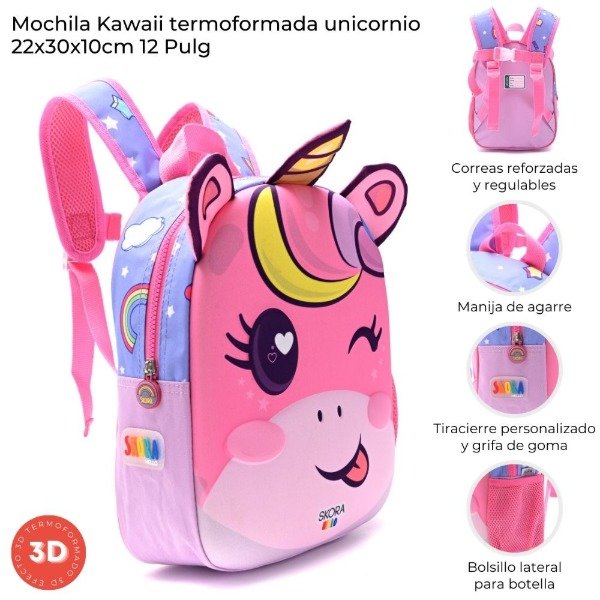 Mochila Kawaii UNICORNIO termoformada 22x30x10cm 12 Pulg