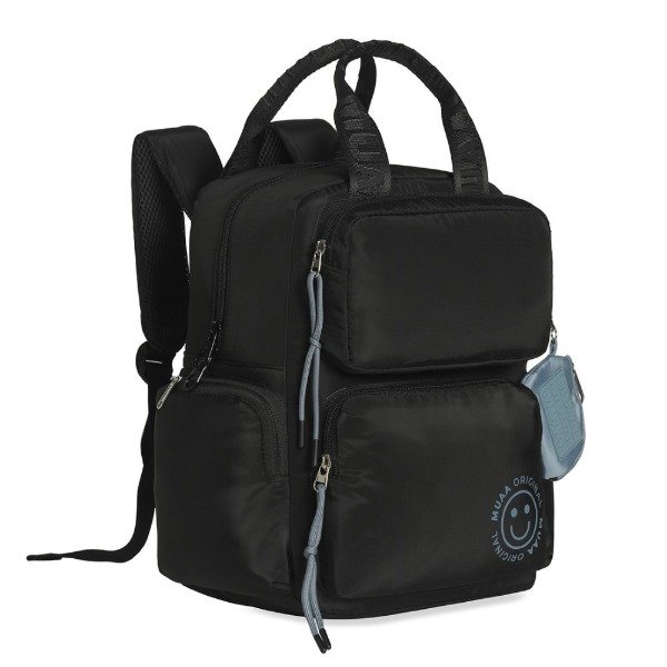 Mochila Muaa 34cm 25cm 17cm Nylon 13 p Bol front, lat, tir reg tela mesh, monedero desmt, org int