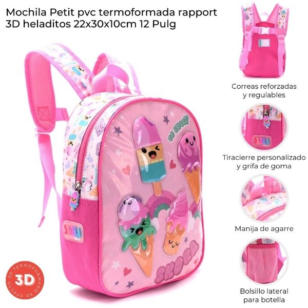 Mochila PETIT HELADO 3D termoformada 22x30x10cm 12 Pulg